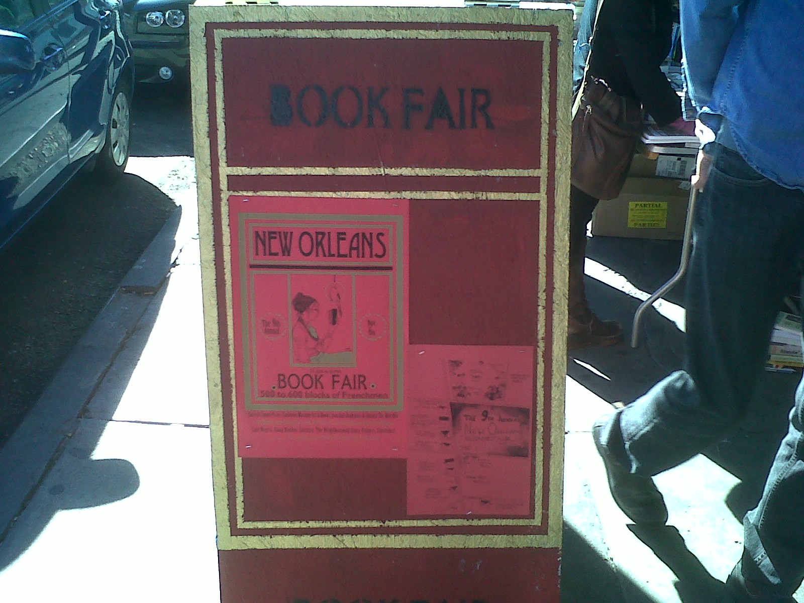 Early the next morning (okay, about 10 am, which is early by N.O. standards), we set up our table. I had a surprising amount of interest in both the books and the literary magazine. I met several writers, whom I asked to submit to STR. I was asked to be on the radio. And my assistant and I ate shared a muffaletta that was bigger than both our heads combined.